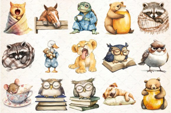The personality in each of these animals is simply irresistible! The turtle in pajamas sipping tea became the star of my “feeling under the weather” care package labels, while the owls with books and glasses were perfect for my book-loving friend’s birthday card. There’s something so endearing about animals engaged in such cozy, relatable activities.