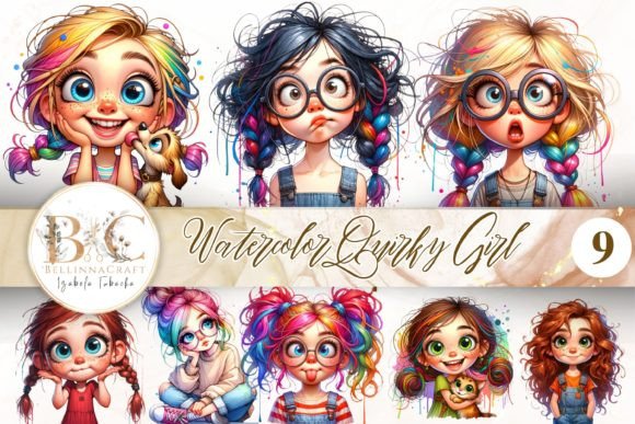 The artistic quality of these illustrations blew me away immediately. Each girl has such incredible detail in her expression – from the surprised wide-eyed look to the thoughtful glasses-adjusting pose. I used the excited blonde girl for my niece’s party invitations, and parents were asking where I’d found such professional artwork!